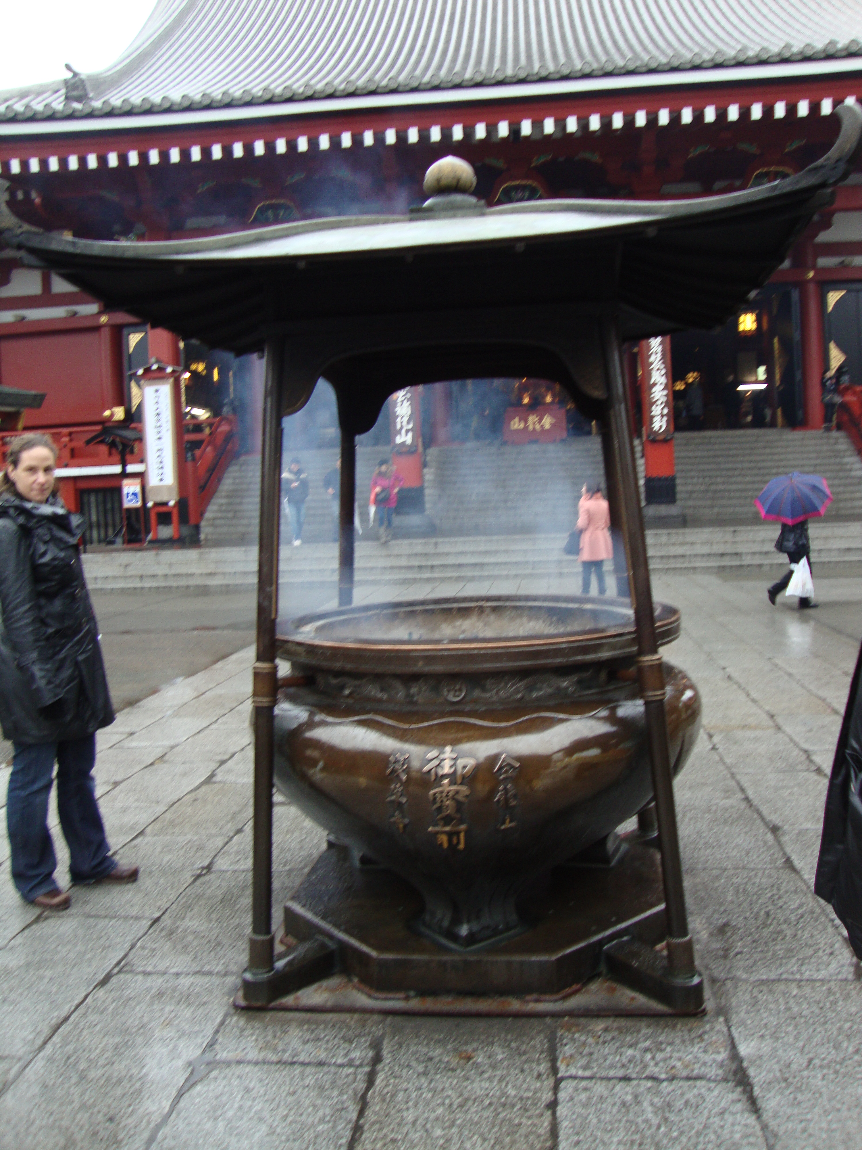 After a short walk, we arrived at the Asakusa Kannon, or Sensoji, which is a Buddhist Temple. There is a front gate called the Kaminarimon, also known as the “Thunder Gate”. It’s the building with the huge lantern.
